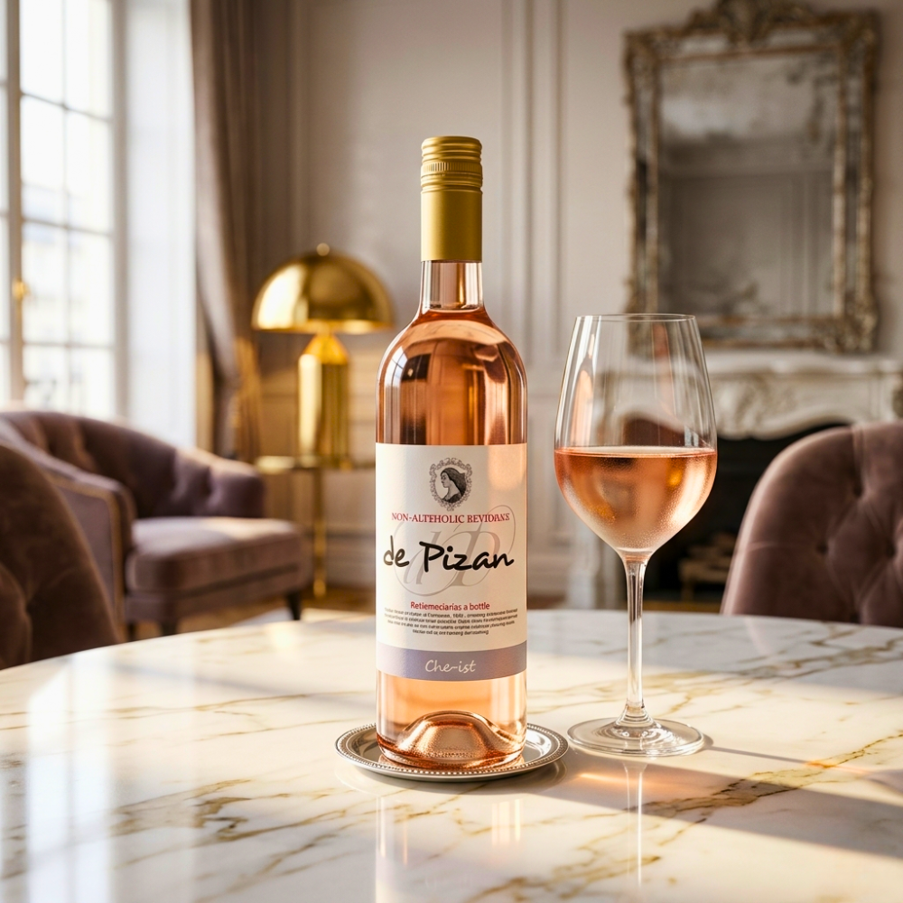 De Pizan Non-Alcoholic Cerise Wine 750 ml is a premium 0.0% alcohol rosé-style beverage produced by de Pizan Beverages, a South African brand known for handcrafted, high-quality non-alcoholic wines. The Cerise varietal is pale pink in colour with a fruity nose and soft, elegant flavours of cherries and raspberries on the palate, offering a refreshing and aromatic experience without any residual alcohol. This beverage is designed to retain the aromatic complexity, balance and structure of wine through a specialised production process that preserves the volatile flavours even after alcohol removal.Ideal for spring and summer enjoyment, De Pizan Cerise is best served chilled and can be enjoyed on its own or paired with light salads, seafood, or casual meals. Its sophisticated profile makes it suitable for social occasions, wellness-focused lifestyles, or anyone seeking a refined alcohol-free alternative to traditional rosé wine.