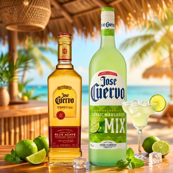 A classic cocktail combo featuring Jose Cuervo Especial Gold 750ml, a smooth and balanced gold tequila with subtle caramel and oak notes, paired with a 1L Margarita Mix for easy margarita preparation. Ideal for parties, celebrations, gifting, or enjoying bar-style cocktails at home.