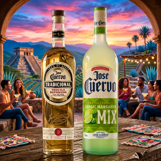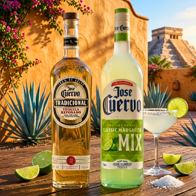 A premium cocktail combo featuring Jose Cuervo Tradicional Reposado 750ml, a smooth oak-aged tequila with notes of vanilla and spice, paired with a 1L Margarita Mix for quick and easy margarita preparation. Perfect for parties, celebrations, gifting, or enjoying bar-quality cocktails at home.