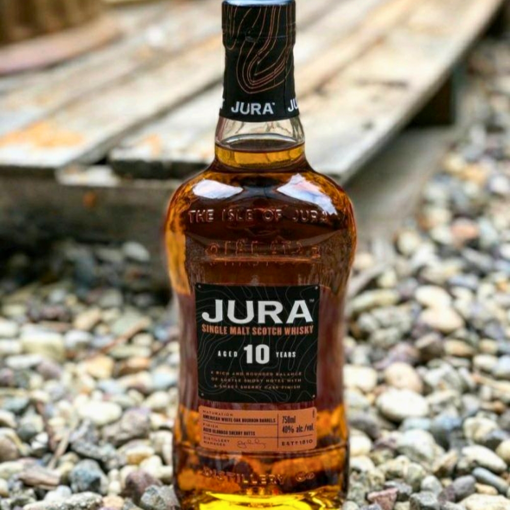 Jura 10 Year Old Single Malt is a smooth and approachable Scotch whisky produced on the remote Isle of Jura in Scotland. Aged for 10 years, it is first matured in American white oak ex-bourbon barrels and then finished in Oloroso sherry casks, giving it a balanced profile of sweetness, fruit, and gentle spice. Bottled at around 40% ABV, this whisky is known for its easy-drinking character and subtle island style.