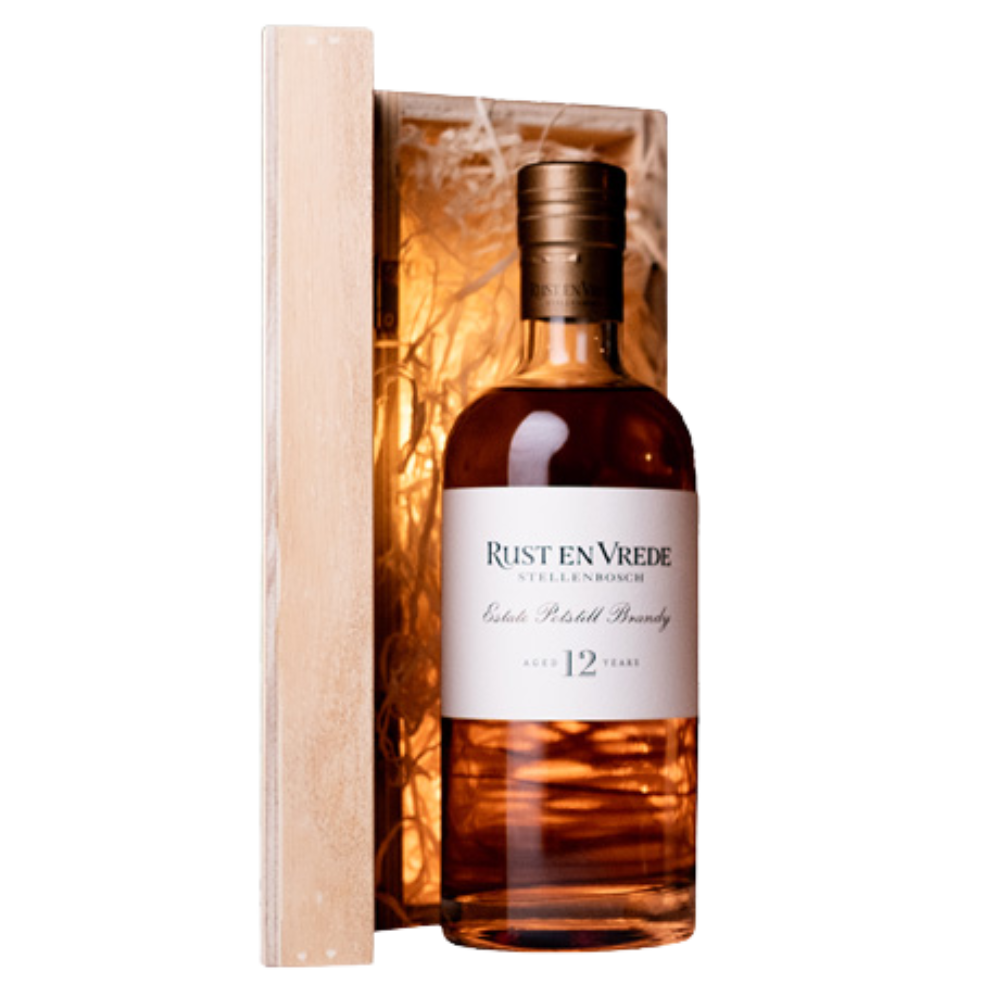 Crafted from 100% estate-grown Cabernet Sauvignon, this premium potstill brandy is distilled in copper stills and matured for a minimum of 12 years in 300 L French oak barrels previously used for Rust en Vrede wines. With some components aged up to 15 years, the blend is reduced to 38% ABV for an exceptionally smooth, digestif-style spirit. It shows a deep amber hue, aromas of candied orange peel, toffee, vanilla, nutmeg and spice, with a rich palate of pecan pie and layered oak complexity. The finish is long, silky, and refined, making it a distinctive Stellenbosch brandy that bridges the estate’s wine heritage with fine spirits.