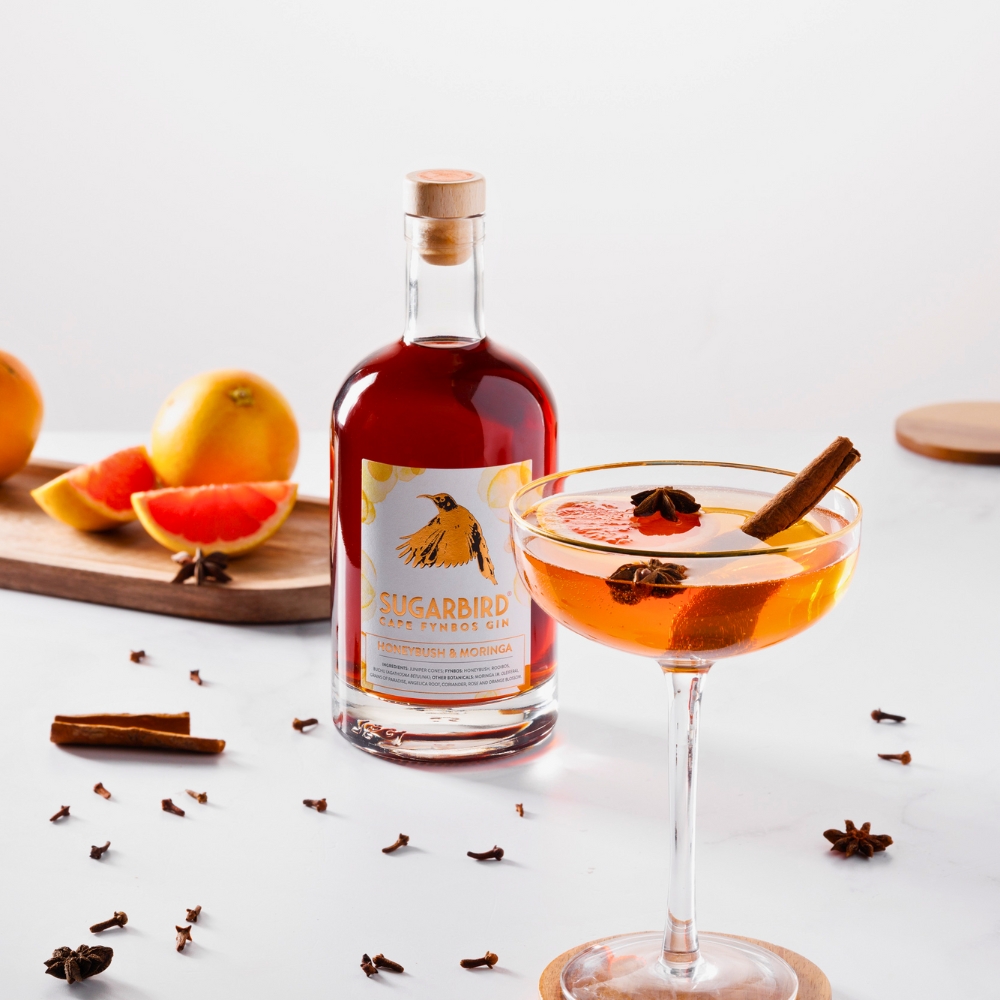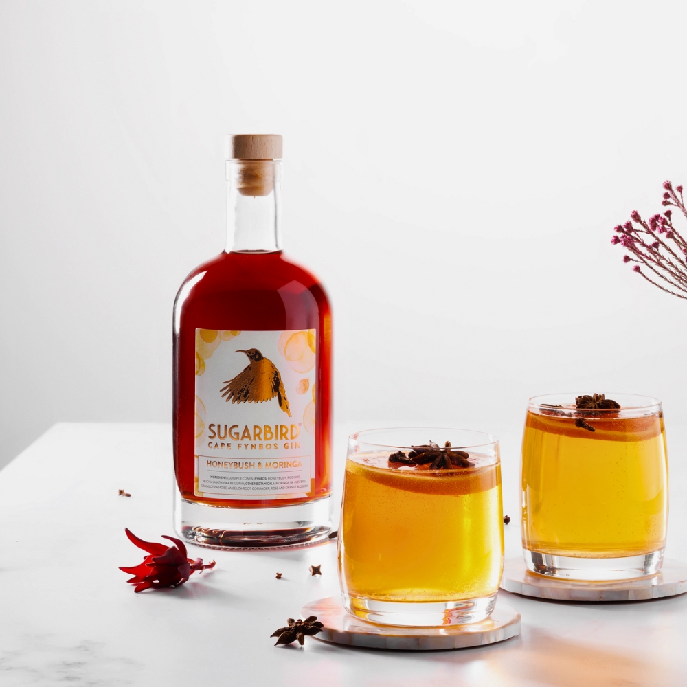 Sugarbird Honeybush and Moringa - Floral, Honey, Spicy, Smooth. This floral-driven gin is infused with sweet wild Cape Honeybush, adding warm toffee notes & Rooibos for its subtle aromatic spiciness. The natural sweetness is delicately balanced by Moringa with its own tart, herbaceous characteristics.